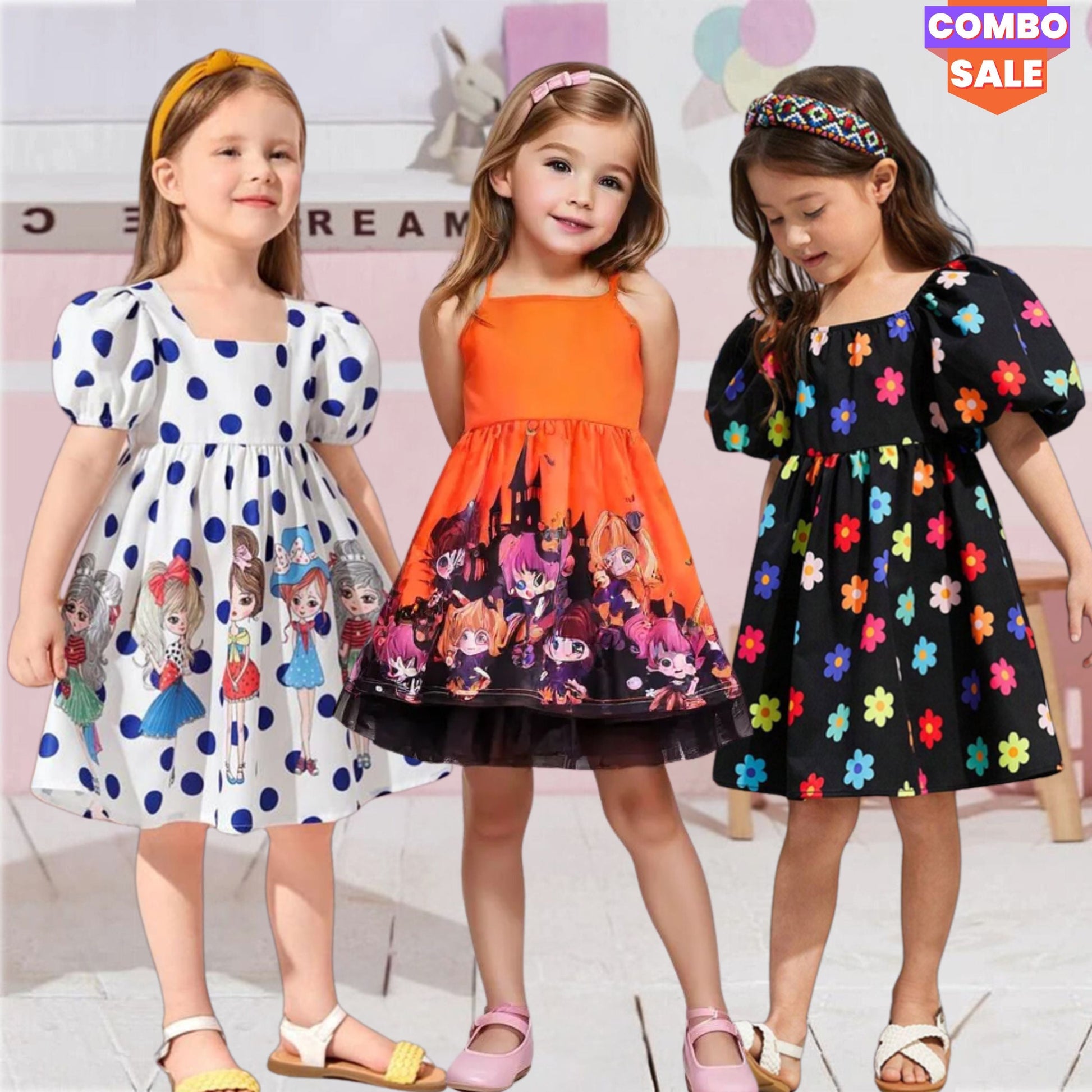 Baby Girl's Floral & Palace_Barbie Frocks (Combo Pack Of 3) for Kids. (For 6 Month to 10 Year)