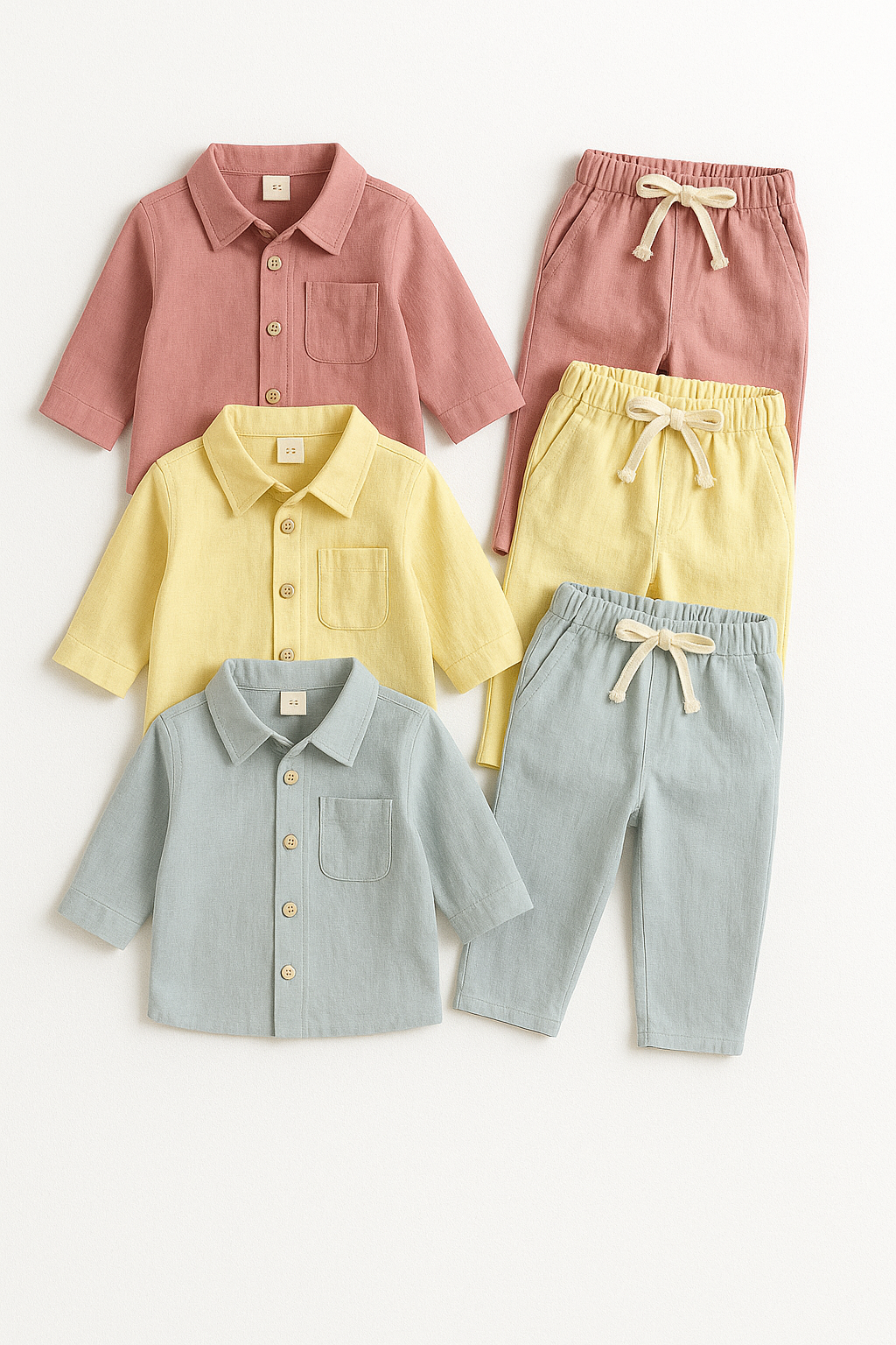 This Cotton Linen Baby Boys Shirt Pant Set comes in a pack of 4, providing parents with a convenient and stylish option for their little ones. Made with a blend of cotton and linen, these sets are soft, breathable, and comfortable for babies. Perfect for any occasion, these sets offer a timeless look with practicality.