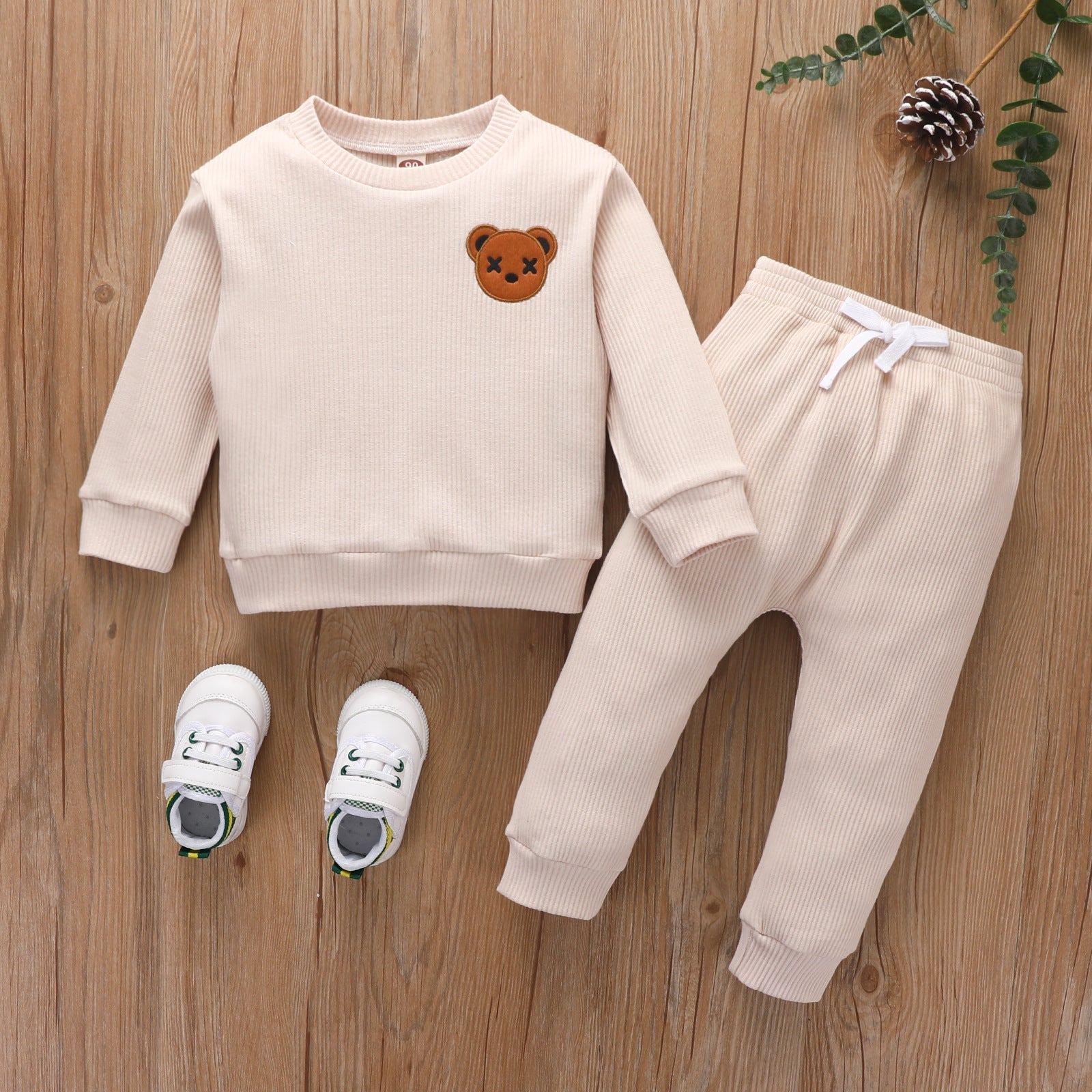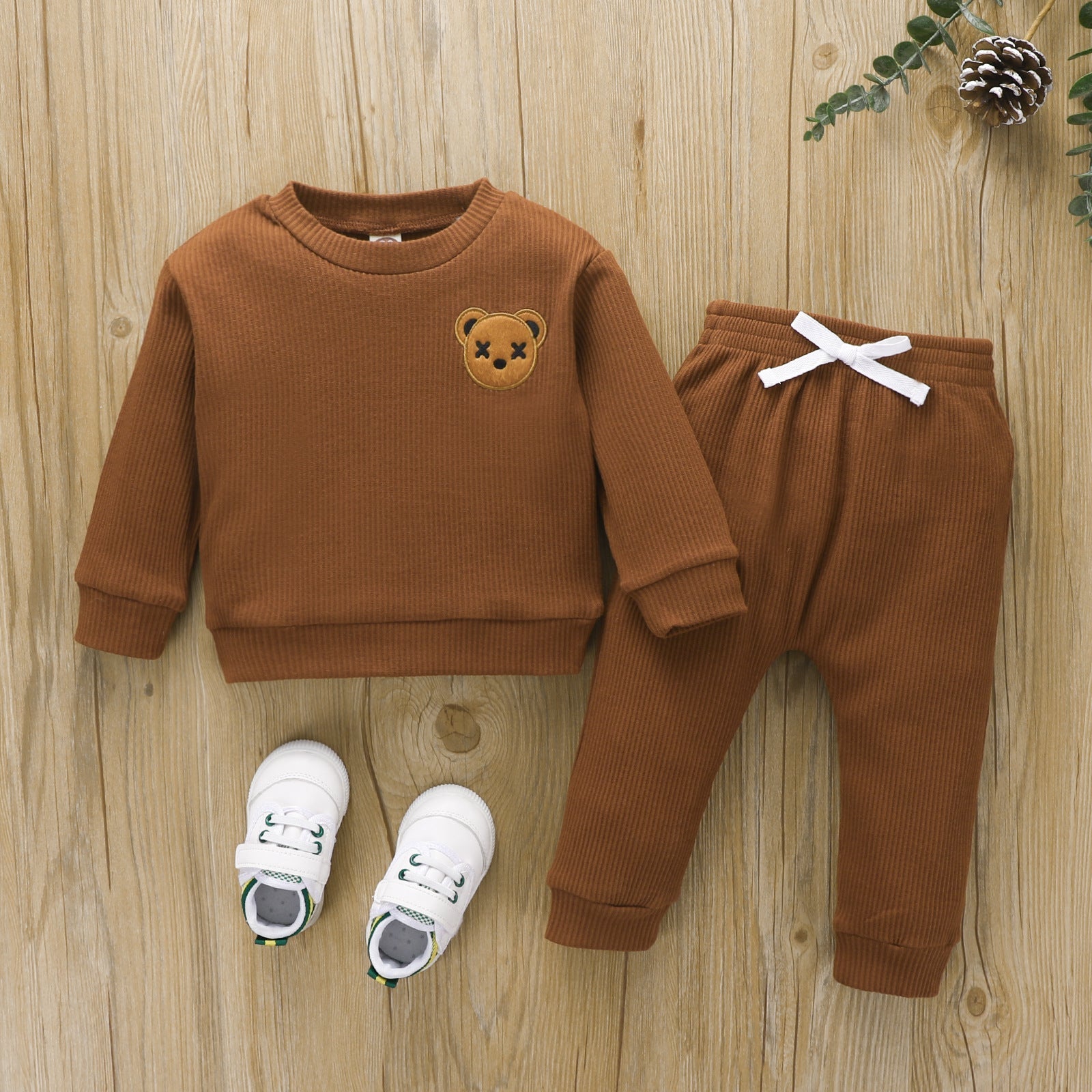 Baby Sweatshirt Set Bear Outfit Ribbed Jogger Set,
